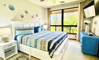 The condo unit is located within the luxurious Shores at Waikoloa Beach Resort, on the Kona coast of the Big Island of Hawaii. It is 27-minute drive north from the Kona airport. It offers stunning views and easy access to beautiful beaches, world-class golf courses, and upscale shopping and dining options. The property features tropical landscaping, creating a serene and relaxing atmosphere. On site amenities include swimming pool, hot tub, fitness center, tennis courts, and barbecue areas. The unit has its own designated parking free of charge.