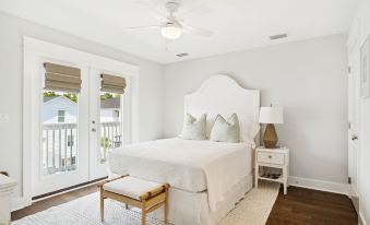 Positioned on the third floor. Queen bed sleeping 2. Front bedroom with balcony access and an ensuite bathroom for added privacy.