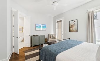 Located on the first floor. King bed accommodating 2 guests. A private oasis with direct access to the backyard. Master bathroom includes a large walk-in closet, soaking tub, separate shower, dual vanity sinks, a private closet, and an additional closet.