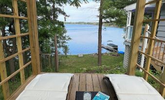 When you walk into the cottage, enjoy breathtaking views of the lake with windows galore on both floors. We have a fully stocked kitchen and coffee bar for your convenience. Just bring your food and drinks, we've got the rest! We offer 2 bedrooms, 2 full bathrooms and a very spacious loft. The cottage will sleep 10 comfortably offering an additional sleeper sofa in both living room for 2 additional guests. The 1st floor bedroom is on the main level and has a king bed with a huge walk-in closet. The 1st bath is right outside the 1st floor bedroom. The 2nd bedroom is located on the lower level with a queen-sized bed. The 2nd full bath is located right outside the 2nd bedroom. The loft is located on the top level and is set up with 3 queen beds, a television with Super Nintendo set up along with a cabinet of games for your enjoyment. There are 2 different living areas - one on the main level and one on the lower level. Both are set up with Roku televisions, making it easy for you to sign into any streaming devices you would like. The main floor living room has a pull-out couch and a reading nook filled with books and puzzles to help you unwind and relax. The lower level has a futon couch that converts into a bed for another sleeping area. Right off the main living area is a covered porch and patio area to relax with the whole family. The patio is equipped with a propane grill, patio furniture and a fireplace! There is another covered porch area off of the lower level for yet more space to relax with family, sip your morning coffee and watch the wildlife and the lake. The house is equipped with free Wi-Fi throughout.