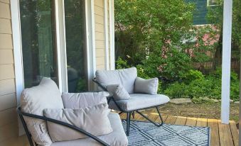 Each bedroom is thoughtfully equipped with ambient lighting from table lamps, an alarm clock with a sound machine, night lights, a Roku TV on a swivel mount, and ample storage space for your belongings. You will also find USB charging ports in either the bedside lamps or back of the alarm clocks for convenient overnight phone charging.