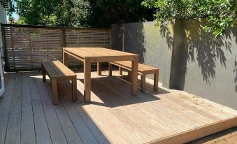 The contemporary living space which flows to an outdoor dining area has a large comfy sofa which is great to relax and put your feet up after a busy day at work or exploring the city. The Smart TV and fibre broadband will enable you to work, stream movies, or both!
