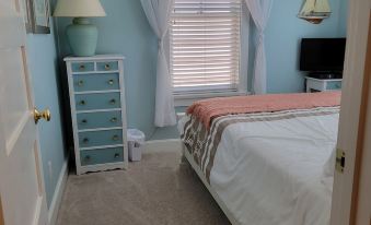 Enjoy this beautiful "Beach House". This tastefully decorated cottage has 2 bedrooms, each with a queen bed, a fully stocked kitchen with a custom back splash, a nice, wooded seating area in the backyard, bright and airy 3 seasons porch with flat screen TV, comfortable furniture, and Wi-Fi throughout. This is a 4 seasons cottage. It is in a prime location, within walking distance from the family pool. This cottage sleeps a max of 4 people. Disclaimer: The clubhouse at Seaglass is strictly 18+, we do have a lovely family pool area at the front of the facility. Thank youAbout pets:No pets allowed.About checkOut:Check out before 10:00 AM.About children:Children allowed: ages 0-17.About checkIn:Check in after 4:00 PM.About smoking:Smoking is not permitted.About minBookingAge:Minimum age to rent: 21.About events:No events allowed.