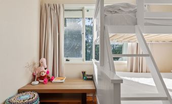 3 bedrooms: 1 bunk bed 1 single bed and 1 king bed