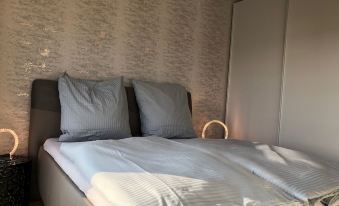 Die Wohnung ist für 2 Personen perfekt.Das separate Schlafzimmer ist gross mit riesiger Fensterfront. Das moderne Badezimmer ist auch gross genug ,eine Ablage für Kulturtaschen wäre gut. Der Wohnraum mit Küche ist auch gut, der Esstisch könnte etwas grösser sein. Der Balkon ist sehr gut für 2 Personen. Zum Einkaufzentrum ist es ca 400m, dort gibt es alles was man benötigt.Der Fahrradständer war schon relativ voll,aber unsere Fahrräder passten noch hinein. Die B1 ist nur 150m entfernt,trotzdem war es sehr ruhig.