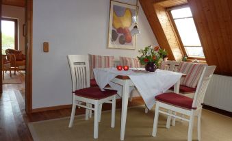 Die Ferienwohnung war sehr gut ausgestattet. Von der steilen und enge Treppe sollten aber gerade geh-eingeschränkte Gäste vorher wissen. Schade war auch das der Schlafbereich außerhalb des Wohnbereiches lag und nicht abschließbar war. Besonders für Familien mit kleinen Kindern kann das ein Manko sein. Alles in allem hatten wir einen tollen Urlaub. Die Wohnung liegt gemütlich am Rand des Städtchen, die Versorgung beim Bäcker und Supermarkt ist entspannt fussläufig möglich, schon im Umkreis von 20 km sind viele Ausflugsziele auch mit dem Fahrrad super zu erreichen.