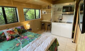 Tired of living in the city? Experience a break from the hustle and bustle and relax on the very edge of Coromandel State Forest. Our brand new bush studio is slightly elevated overlooking our 5 acre property with expansive lawns and lily ponds. Landscaped grounds with beautiful native bush backdrop. Our studio is not large but has everything you need and no more. It is full of charm and in a nestled in a wonderful setting. About pets:No pets allowed.About checkOut:Check out before 10:00 AM.About children:Adults only.About checkIn:Check in after 3:00 PM.About smoking:Smoking is not permitted.About minBookingAge:Minimum age to rent: 18.About events:No events allowed.