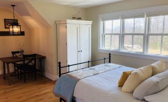 Escape to our guesthouse on a mini working farm. This peaceful setting tucked away on several acres along a creek with nature trails is the perfect mountain getaway. We are conveniently situated near quaint wineries such as King Family, breweries along with hiking and the Blue Ridge Parkway that is a short hop, jump and a skip away. Every effort has been made to keep this a green haven, chemical and synthetic scent free, so you can leave recharged and rested. Non-smokingAbout pets:No pets allowed.About checkOut:Check out before 12:00 PM.About children:Children allowed: ages 0-17.About checkIn:Check in after 3:00 PM.About smoking:Smoking is not permitted.About events:No events allowed.