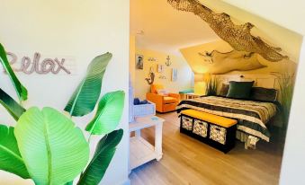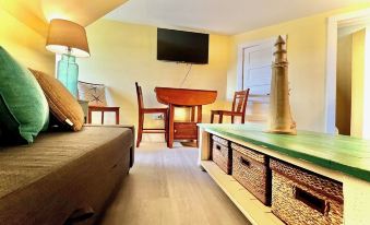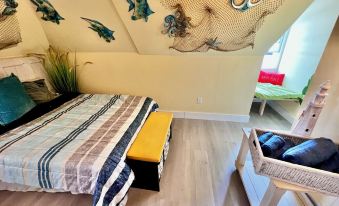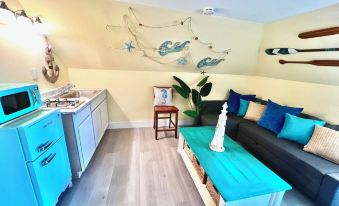 Attic-style & modern comfort blend to create an unforgettable stay. This Nautical theme 1BD/BA has whimsical low vaulted ceilings, with a cozy reading nook. Plus a Retro kitchenette.