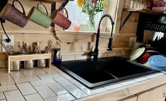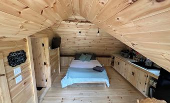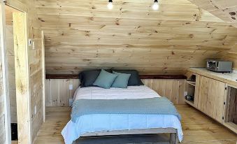 Wonderful stay. Small studio cabin was well equipped and had lots of extras. We appreciated the smores supplies, wood supply, treats, extra chairs and extra bedding for a third guest, fan, and a/c. Plus a nice hot tub, trails, axe throwing, wood fired pizza oven, and tiki bar. Plus use of kayaks and canoe. This place is its own destination!