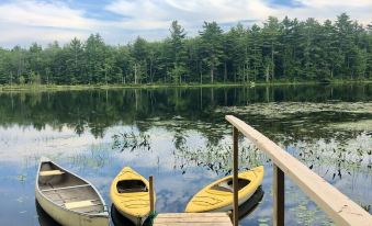 We are a new business and Stella is a work in progress, the kitchen has all the essentials for your stay. There are trails outside, some are solar lit for night time exploring. There is a brook on the edge of the property about a mile hike from the apartment. We currently have 2 canoes, 4 kayaks, and 2 paddleboards for guests to use during their stay. There is a dock area with life vests and paddles.