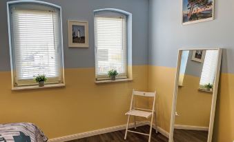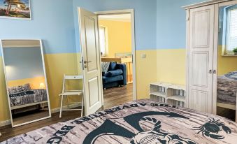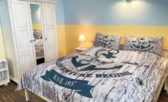 Cosy, comfortable single-family house "Finca Wismaria", 2 storeys, built in 2009, renovated in 2023, surrounded by trees. On the outskirts, 3 km from the centre of Wismar, in a quiet position on top of a hill, traffic calmed area, 2.5 km from the sea, 2 km from the beach, in a cul-de-sac. Private: property 300 m2 (fenced), garden 9 m2 with wildlife garden. In the house: central heating system. Parking on the premises. Supermarket, bakery 800 m, pedestrian zone 3 km, bus stop "Richard-Wagner-Str." 600 m, sandy beach "Wendorf" 2 km, thermal baths "Wonnemar Erlebnisbad" 2 km. Marina 2 km, golf course (18 hole) 14 km. Nearby attractions: Tierpark Wismar 500 m, Insel Poel 18 km, Weltkulturerbe Stadt Schwerin 37 km. Please note: suitable for families. Owner lives in separate semi-detached house. 4-room house 90 m2 on 2 levels. Object suitable for 2 adults + 2 children. Spacious and bright, cosy furnishings: living/dining room with dining table, radio and CD-player. Kitchen 10 m2 (oven, dishwasher, 4 induction hot plates, toaster, kettle, microwave, freezer, electric coffee machine). Shower, sep. WC, double hand-basin. Upper floor: open living room with satellite TV (flat screen). 1 room with 1 x 2 bunk beds (90 cm, length 200 cm). 1 room with 1 double bed (180 cm, length 200 cm). Heating. Natural stone floors. Terrace 9 m2, patio. Terrace furniture. Facilities: Internet (WiFi, free). Parking (2 cars) at the house. Please note: non-smoking house. Smoke alarm. Bookings accepted for holiday purposes only.