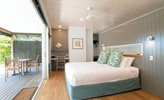 This place is a gem! Perhaps our favorite of 6 places along the Queensland coast. Super-quiet, very modern, like a cabin in the woods, on the beach! Steps from a gorgeous long stretch of beach (no one on it in late July), nice plunge pool, good amenities, although not a full kitchen. (Who knew you could microwave salmon?) There is a cart for luggage, 2 minutes’ walk to the property. So private yet 5 minutes from restaurants. We will be thinking of it months from now.