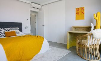 The first floor has two more bedrooms, each with very spacious fitted wardrobes. The comfortable hotel beds (box spring) are each 1.80 m wide. Enjoy the view of the Bay of Javea from the bed. One of the bedrooms has access to a roof terrace, which is equipped with garden furniture. Here you can enjoy the sunset overlooking the sea.