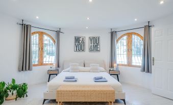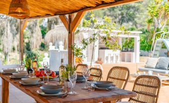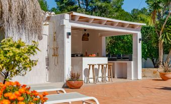 Very beautiful, comfortable villa "Sierra Pinos Plus", 2 storeys, renovated. In the district of Entre Pinos, in a quiet, sunny position, 3 km from the sea, 3 km from the beach. Private: large, beautiful, well-kept terraced garden with lawn and wildlife garden, swimming pool angular (10 x 5 m, depth 110 - 300 cm, seasonal availability: 01.Jan. - 31.Dec.) with internal staircase. Slide, pool house with fridge, shower, WC and cooking stove, patio, pergola, garden furniture, barbecue. In the house: billiard table. Parking on the premises, single garage. Shop 1.5 km, supermarket 1.5 km, restaurant 1.5 km, bar 1.5 km, bus stop "Toscamar" 1.6 km, sandy beach "El Arenal" 3.5 km. Golf course (9 hole) 8 km, surf school 3.5 km, sailing school 3.5 km, tennis 3.5 km. The owner does not accept any youth groups. "Casa Sierra Pinos Plus", 6-room villa 320 m2 on 2 levels. Spacious and bright, renovated, very beautiful and stylish furnishings: living/dining room with satellite TV, air conditioning and forced-air heating. Exit pergola, to the swimming pool. 1 room with 1 french bed (160 cm, length 200 cm), shower/WC, air conditioning and forced-air heating. 1 room with 1 french bed (160 cm, length 200 cm), air conditioning and forced-air heating. 1 room with 1 x 2 bunk beds (90 cm, length 200 cm), air conditioning and forced-air heating. Kitchen (oven, dishwasher, 5 gas rings, toaster, kettle, microwave, freezer, electric coffee machine, Capsules for coffee machine (Nespresso) extra). Bath/WC. On the lower ground floor: 1 room with 1 french bed (180 cm, length 200 cm), bath/WC, air conditioning and forced-air heating. 1 room with 1 french bed (180 cm, length 200 cm), shower/WC, air conditioning and forced-air heating. Exit to the patio. Small kitchen (toaster, kettle, microwave, freezer, electric coffee machine, Capsules for coffee machine (Nespresso) extra). Large garden, lawn. Terrace furniture, barbecue, deck chairs (6), covered balcony, sitting area. Facilities: washing machine, iron, children's high chair, baby cot, hair dryer. Internet (WiFi, free). Parking, garage. VT-496994-A ESFCTU00000307100037223400000000000000000VT-496994-A0