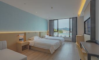 房間大小及衞生狀況還不錯,海景房面朝大海一早看着心情也愉悦。配有寫字桌,假期出遊孩子還能寫寫功課。離幾家網紅麪店及居民區早餐店都挺近的(早餐店街上停車位很少得靠運氣)酒店停車場車位很富足。酒店出左側有超市,補給很方便。