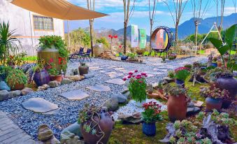 房間設計的很漂亮,小院被老闆打理的多肉植物