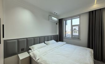 房間很乾凈,一家人住很方便。四件套和洗臉巾浴巾都是一次性的。沙發也是梳化床,打開也可以睡人,特別好。兩個卧室都有空調。樓下可以停車充電,自駕出行太讚了!
