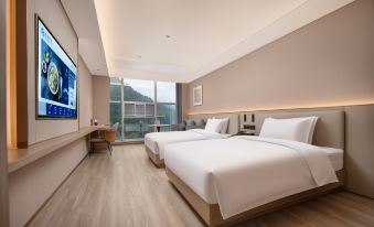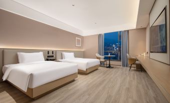 The hotel has a Chinese restaurant, a teahouse, meeting rooms, a multi-functional hall and a wedding hall. Additionally, the hotel is equipped with a self-service laundry room, a gym and a breakfast room offering a buffet breakfast. The front desk is equipped with a self-service check-in system, enabling a check-in process within 30 seconds and a check-out process in no time. Moreover, the hotel provides a free parking lot, charging piles and contactless delivery by robots, ensuring a worry-free stay for you. All the hotel staff are looking forward to your arrival.