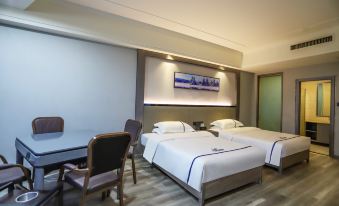 在網上查酒店看到的這家酒店的評分很高,嗯,非常的不錯,到酒店來了前台熱情,幫你入住的時候也非常的迅速,還有前台有免費的小糖果,還有茶水啊,房間乾淨整潔,樓道也很乾凈,樓層服務員也很不錯,非常的貼心。早餐在10樓,10樓早餐豐富多樣,適合小朋友,大人的都可以,非常的好。有免費的停車場。交通便利,處於市中心。設施很好,環境也很好。房間裏面都是智能的。推薦推薦。