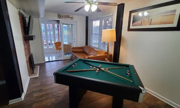 This is a super quiet and relaxing place. Most days, the only sounds you'll hear are geese & ducks playing out in the water. Since it's on a cove and away from all the lake traffic, it's perfect for low-key activities like kayaking, paddle boarding, and fishing (all provided for you). While the lake is the main attraction, we've tried our best to make the inside of the house fun & comfortable as well. Feel free to use the two wood burning fireplaces (safely please) and watch Netflix or YouTube TV in any room of the house. There are two private bedrooms with queen beds upstairs. The rest of the beds are downstairs: Queen size sofa pull-out bed and full size bunk beds. 1 full bathroom upstairs and 1 full bathroom downstairs.