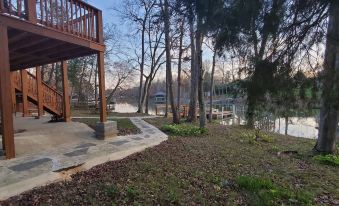 Relax with the whole family at this peaceful lakehouse retreat, nestled on a quiet cove of Lake Wylie. Enjoy your days out on the lake on the provided Kayaks or paddle boards, and then huddle around the fire with your loved ones in the evening. With two indoor wood-burning fireplaces, a fire table on the deck overlooking the lake, and a fire pit in the backyard, you'll have plenty of options. Grill up some steaks on the outdoor brick BBQ and then relax on the porch swing or comfy egg chairs.