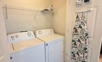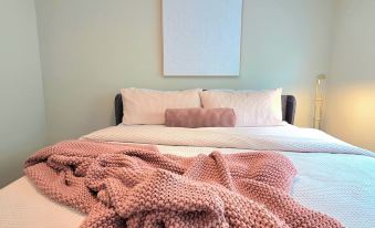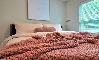 This pink retreat was thoughtfully designed for a whimsical getaway with your comfort and convenience in mind. Whether you are in town for a quick trip or needing an extended stay, this ground-floor apartment comes equipped with a stocked kitchen, spacious and comfortable beds, high-speed internet, a smart TV, full bathrooms, a wooded view, and in-home washer and dryer.About pets:No pets allowed.About checkOut:Check out before 10:00 AM.About children:Children allowed: ages 0-17.About checkIn:Check in after 4:00 PM.About smoking:Smoking is not permitted.About minBookingAge:Minimum age to rent: 18.About events:No events allowed.