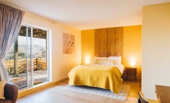 Both our Grapefruit Room and Lemon Room are extremely spacious and offer luxurious queen-sized beds, blackout curtains, ample closet space, desks to work from, and additional private seating areas. The Grapefruit Room is all shades of warm pink and is said to melt you right into relaxation. Our Lemon Room is filled with mustard yellows, has an additional couch to watch TV from, and features our famous ‘jungle cubby’.