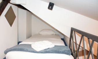 An attic apartment with a character - air-conditioned, fully equipped, and in a great location. It is accessed by steep stairs that are somewhat difficult to climb. There is also a ladder that leads to two loft mattresses unless you prefer to sleep on the sofa.