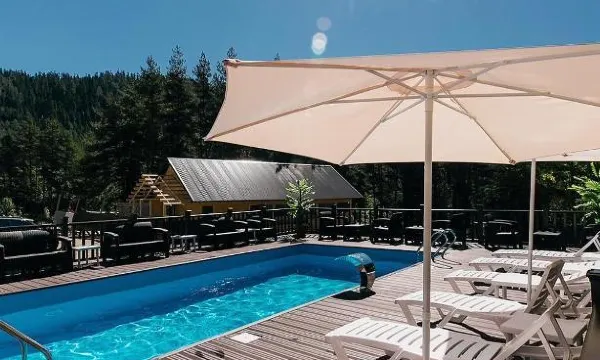 It offers: a cafe with a wide selection of Caucasian and European cuisine, a loft bar with a hookah area, an outdoor heated pool with sun loungers, a sauna complex, a barrel bath with a font, barbecue areas, billiards, karaoke, a children's playground, a tour desk. In winter, ski equipment rental with a dryer is available.