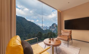 Yunmanshan Residence is located just outside the south gate of Zhangjiajie National Forest Park, surrounded by lush, pristine forests. The architectural style is primarily modern and luxurious, characterized by simplicity and natural elements. The residence promotes a "slow life" philosophy, inviting guests to escape the hustle and bustle of city life and enjoy the tranquility of nature. The rooms are meticulously designed, each with its own unique charm. They are equipped with cozy home furnishings and thoughtful amenities, such as high-end bathrooms and exquisite coffee machines, offering a home-like comfort.In terms of dining, the residence features local chefs who prepare authentic Zhangjiajie Tujia cuisine, such as stewed native chicken and smoked bacon. Additionally, a variety of drinks and snacks are available to satisfy both food enthusiasts and gourmets alike. Beyond comfortable accommodations and delicious food, there are plenty of leisure activities to enjoy. Guests can admire the stunning mountain views from the residence's terrace and breathe in the fresh air of nature. The warmth and comfort of the rooms help guests completely forget the stresses of work. After savoring local delicacies, guests can opt for hiking or cycling, with the scenic views along the way providing a refreshing and invigorating experience.