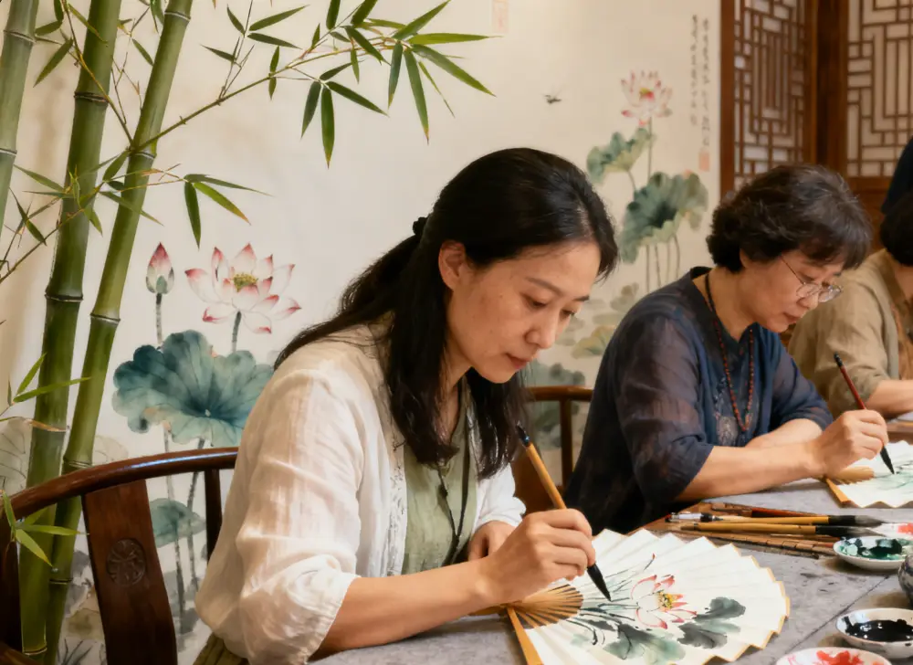 Artistic Crafting: Drawing Qinhuai lantern reflections on plain silk fans, painting Linggu Temple's pines on purple clay teapots. Your brushes carry not just pigment but also Wuyi Alley's sunset and Xuanwu Lake's mist.