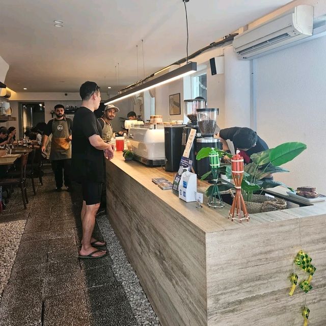This was yet another impressive breakfast place we found during our time in Bintan. Tucked away in the corner and had a nice vibe, had their Turkish eggs, Builders breakfast, waffles with maple syrup and coffee. The portions are big. The builder‘s breakfast, the mediterranean breakfast and the breakfast croissant-wich, where the perfekt way to start our day. The staff is nice, fast and respectful. The waffles could have been topped with some whipped cream or ice cream and a more generous helping of maple syrup #bintanguide#travel