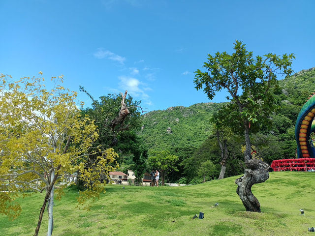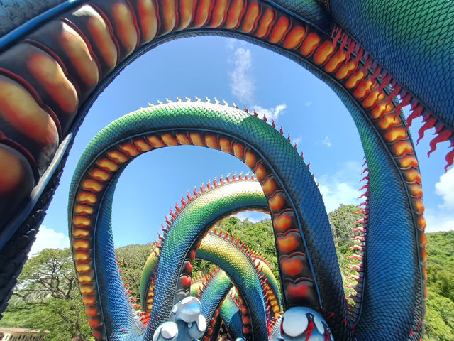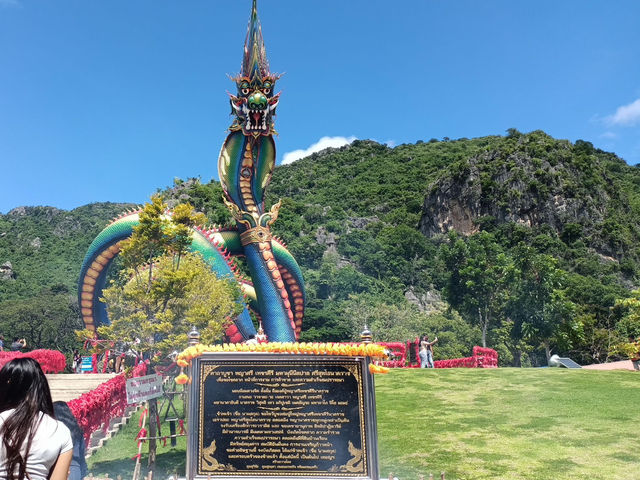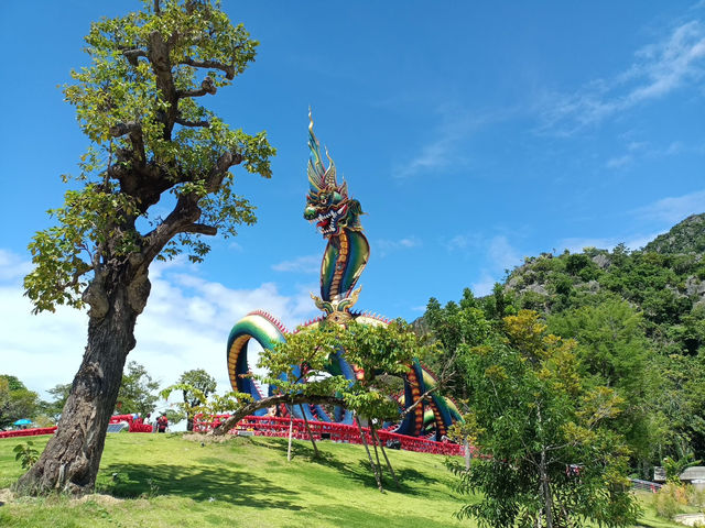 #GetDiscountsWithoutLuck#BeautifulTemplesAroundThailand #WatThamChaeng #VisitPhetchaburi #WorshipandRequestBlessings #SililTrip Another Naga located in Phetchaburi Province is considered the largest Naga in Thailand. It is considered a new landmark of Phetchaburi Province and is very popular among the spiritualists who travel to worship and request blessings from “FatherPhraPhraPhetKiri Mahamuni Srisutthonakraj”, the first Naga in Phetchaburi and the largest in Thailand. It is about 31 meters high, with a diameter of 2 meters, and a body length in the shape of an Unalome talisman. There are 9 holes to pass through, and it is 227 meters long. It is indigo-colored or the green color of a beetle’s wings, making it beautiful and magnificent. *** How to make a wish *** Just make merit by offering incense and red cloth according to your faith. Bring the red cloth to write your name, date of birth, and the blessing you want to ask from Grandfather. Then, light incense in front of Grandfather and make a wish. When you are done, stick the incense in and walk to the back and chant another 9 prayers, which are located in the middle of the Naga’s body. Ready to tie a red cloth at the point where we want to make a wish, the ceremony is complete. Anyone passing by, don't forget to stop by and help make merit and build a new church that is under construction and not yet finished. Don't forget to make merit and see one of the most beautiful Thai temples in the country. Location: Khao Yai Subdistrict, Cha-am District, Phetchaburi 🕰️Opening hours: Open daily from 5:00 AM - 9:00 PM