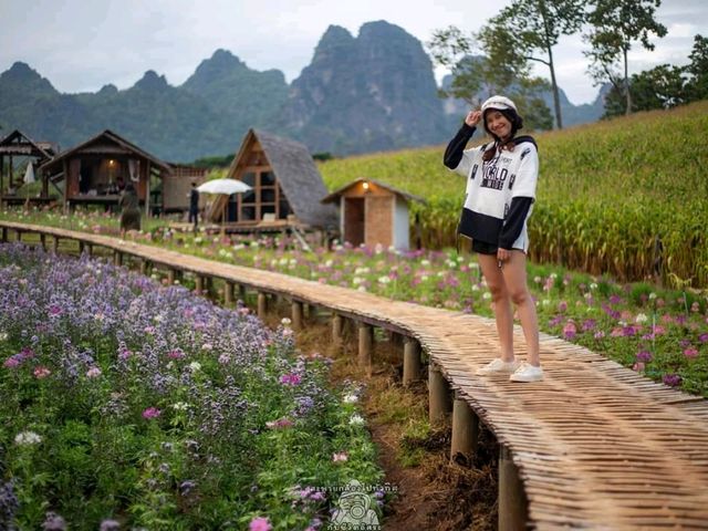 Accommodation in the middle of a flower field...a stunning view of Chiang Dao