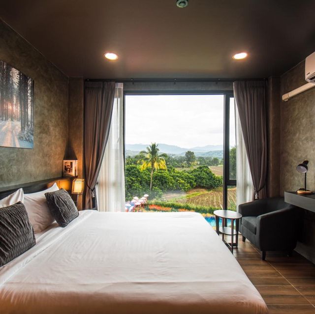 #Cheap hotel The View Chiang Dao, Chiang Dao District, Chiang Mai Province, caters to those who love nature but like to sleep in a hotel with a rooftop view of Doi Luang Chiang Dao, very beautiful. There is a large swimming pool, fitness center, and a garden zone, a cafe, and a flower garden for you to travel and take pictures. The rooms are beautifully decorated, quiet, and fully equipped with facilities. In the evening, sit and chill on the rooftop for dinner. There is a rooftop restaurant where you can order drinks. In the morning, there is fog, I must say it is very refreshing. The breakfast buffet line has northern food as well. I like it very much. Anyone who comes to visit Chiang Dao, this is another interesting hotel. It is convenient and the price is cute. #Good atmosphere accommodation