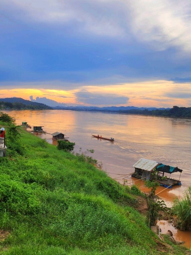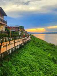 “Chiang Khan… the curved Mekong River, classic wooden houses, beautiful views from every angle 🛶🌄