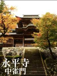 A majestic and beautiful Buddhist temple that looks like it has twenty roofs | The corridor connecting the seven buildings. Not only the stairs, but the world seen through the latticework is also amazing. | The gate between the temple gate and the Buddhist temple. Many people take photos of the beautiful autumn leaves and gate. | It is said that if you find five animal pictures, your wish will come true. | A beautiful green approach guarded by old cedar trees - a great photo spot | A beautiful hexagonal tower (where sutras are stored) and the beauty of the autumn leaves. | Autumn leaves at Eiheiji Temple. The area around the temple gate is a magnificent sight with a rich gradation of colors. | [Eiheiji Temple, Fukui🪷] A journey to tranquilize your mind in a sacred Zen temple enveloped in tranquility and solemnity | Public Transportation Adventure: First-Time Trip to Fukui | [Eiheiji Temple - Experience Zen meditation with the whole family!] | [A Zen journey to clear your mind at Eiheiji Temple] A famous temple in Fukui enveloped in silence🙏🍃 | Daihonzan Eiheiji – The Tranquil Zen Monastery of Japan | Winter Wonders in Fukui – Temples, Dinosaurs & Peaceful Shrines | Living in Harmony with Nature: "Hare nochi, Motto Hare" | Japan, Fukui Prefecture | Eiheiji Temple | Japanese Soto sect surrounded by a majestic atmosphere | [Fukui x Eiheiji Temple] The crystal ball above the Chozuya (purification fountain) is a must-see | [Fukui x Eiheiji] The lecture hall where sermons are given, a national important cultural property | [Fukui x Eiheiji] The atmosphere changes completely! The approach to the temple is surrounded by deep greenery | [Fukui x Eiheiji] Stairs and corridors connecting the seven buildings | [Fukui x Eiheiji] If you find the five animal motifs on the magnificent ceiling painting... | Breathtaking Japan Trip for Qingming – Don’t Miss Out! | 8-Day In-Depth Japan Trip Guide for a Short Holiday | 🇯🇵Fukui Travel|Transcend the World to Eiheiji Temple | [Fukui] Recommended gourmet spots in Oku-Echizen | Fukui: A Small City with a Mix of Leisure and Bustle | Fukui: A Dreamy Puzzle Piece of Japan's Lesser-Known Travel Destinations | Unlock Fukui: A Hidden Gem in Japan | Fukui: Discover Japan's Hidden Gems | Explore Fukui, Japan, and Discover Its Hidden Beauty