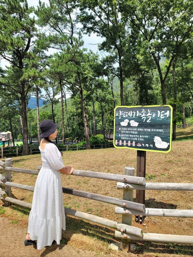 This is a highly recommended outdoor date spot for your Geoje travel itinerary 💚. If the weather had been a bit cooler, we could have fully enjoyed the scenery and climbed the slopes with excitement. However, it was such a hot day that we barely made it to the top, almost passing out. But now, there's a monorail, making it super convenient to reach the top 💚. For a park with free admission, the equipment and facilities here are impressively clean and well-maintained. There's even a sand play area! Despite the heat, there were already kids playing there. Right next to the playground is a sheep grazing ranch, making it a perfect spot to visit and explore together 🧡. 📍 Soopsori Park, Dotori Playground 🧭 San 13, Seosang-ri, Geoje-myeon, Geoje-si, Gyeongsangnam-do
