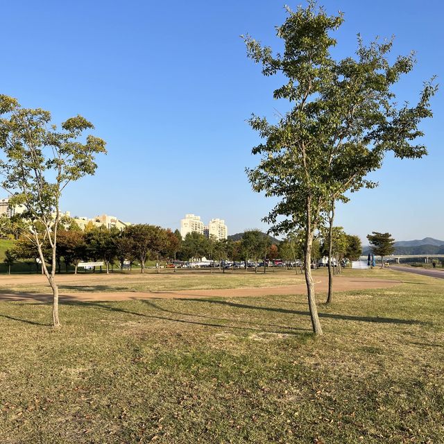 In Gongju, Chungcheongnam-do, there is a wonderful park surrounding the river called Geumgang Dunchi Park! This is a resting place for Gongju citizens where you can enjoy a picnic๐Ÿงบ and ride a bike, just like Hangang Park in Seoul๐Ÿฅฐ It is not crowded like Hangang, so it is perfect for enjoying leisurely in the fall like these days, and you can also rent Gongju bicycles Baekje Singsing for free๐Ÿค so it is a highly recommended fall travel destination where you can see the fall foliage, have a picnic, and ride a bike๐Ÿ ๐Ÿ“Geumgang Dunchi Park - 368 Geumbyeok-ro, Gongju-si, Chungcheongnam-do #Suburbs of Seoul #Picnic Trip