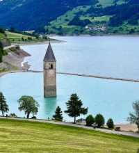 🌊🏔️ Lago di Resia– The Lake with the Sunken Bell Tower | Solo with a Sunken Soul: The Bell Tower of Curon Venosta | Mystical Views and Historic Charm at Lago di Resia | A Hidden Gem by the Sunken Bell Tower – Tower Imbiss | Curon, a place of mistery and magic | Curon: Unveiling the Magic of Val Venosta 🧡🍂 | 🇮🇹 Italy | Resia Lake Lago di Resia