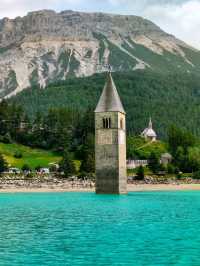 🌊🏔️ Lago di Resia– The Lake with the Sunken Bell Tower | Solo with a Sunken Soul: The Bell Tower of Curon Venosta | Mystical Views and Historic Charm at Lago di Resia | A Hidden Gem by the Sunken Bell Tower – Tower Imbiss | Curon, a place of mistery and magic | Curon: Unveiling the Magic of Val Venosta 🧡🍂 | 🇮🇹 Italy | Resia Lake Lago di Resia