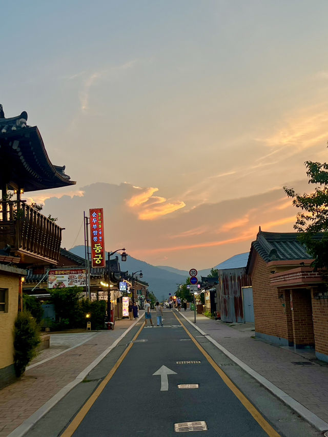 Beat the summer heat with a trip to Gyeongju☀️! First stop: Gyeongdong Water Park for some exciting water fun! With various slides and a wave pool, the day flew by in no time💦. Next, we strolled along the charming Hwangridan-gil, exploring its quaint cafes and shops🏘️. When hunger struck, we headed to Gyeongju Eobo. This place is famous for its fish set meal🐟✨, featuring grilled fish and a variety of side dishes served with a homely warmth that made the trip truly rejuvenating🍚💛. To wrap up the day, we indulged in mango bingsu🥭❄️ at 1894 Sarangchae. Enjoying the cool and sweet dessert in a traditional Korean house setting was the perfect way to end the day. Gyeongju truly offers the complete package of food, sights, and relaxation!✨