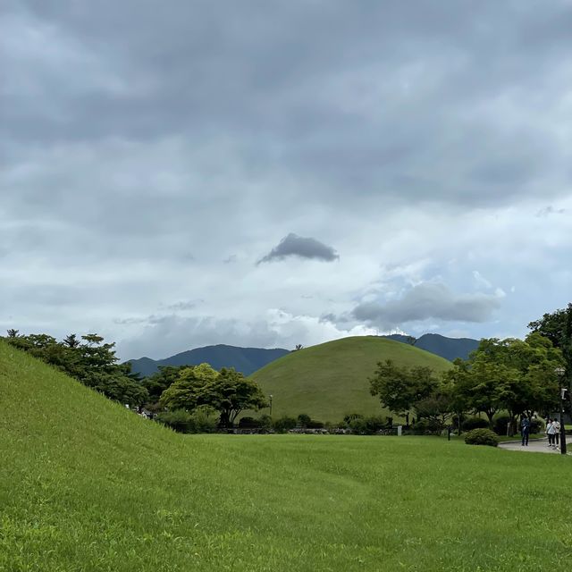 #GyeongjuTravel A Gyeongju travel course that's easy to navigate even on foot. Daereungwon, located right next to Hwangridan-gil in the city, is a great place to take photos inside and admire Cheonmachong Tomb. Food and drink are prohibited, so if you bought a 10-won bread nearby, be sure to eat it before you go. The gold crown discovered at Cheonmachong Tomb is said to have the thickest gold plate and the finest gold among all Silla-era crowns. Seeing these magnificent Silla artifacts is surprisingly interesting, so I highly recommend it! #Daereungwon #Cheonmachong #DomesticTravel