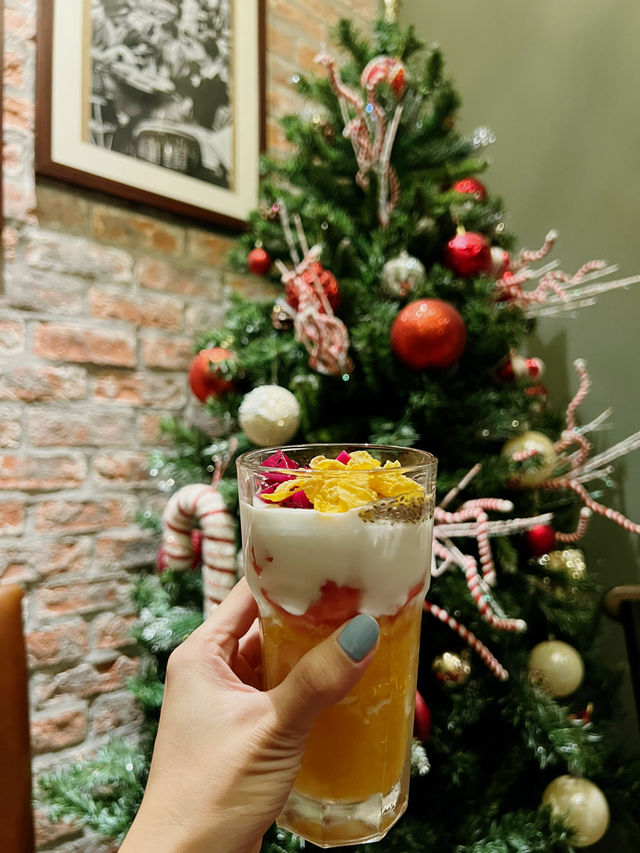 Ambiance: The coffee shop has a cozy, inviting atmosphere, beautifully enhanced by Christmas decorations. They offer both indoor and outdoor seating, catering to those who enjoy the chill weather and street view outside or the warm, festive atmosphere indoors accompanied by the melody of Christmas songs. Beverages: Besides options of coffee and tea drinks, I ordered the fruit yogurt with cereal topping. It was delightful, with a perfect balance of flavors and textures. The slight tanginess of the yogurt paired well with the fruity sweetness and freshness of the tropical fruits, while the crispy cereal added a satisfying crunch. 📍Address: 55A Phan Chu Trinh, Hoan Kiem District, Hanoi 💰Avg. Price per Person: VND 40k-100k Rating 💫💫💫💫 #magicalxmastrip #localguides #tripmoments