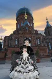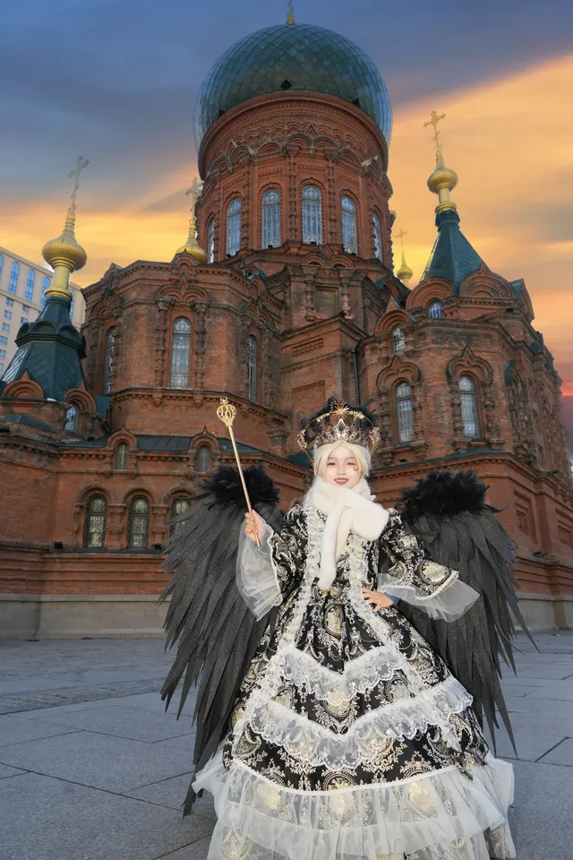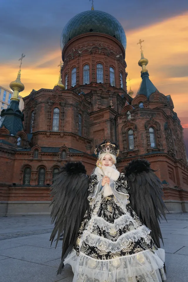 Avoiding the National Day holiday, I brought my two kids to Harbin~ (Can’t help but say the experience was amazing 👍 Harbin people are so warm and friendly) I was worried the kids wouldn’t adapt to the unfamiliar city, but as soon as we arrived at Saint Sophia Cathedral, their eyes lit up! ⛪️ The cathedral is vintage and gorgeous, perfect for photos! This time I chose Lolita-style parent-child outfits. The older one wore an outfit with black wings, instantly becoming a mysterious little “black angel”~ She loved it so much~ (ps: There are many styles of clothing, personally I think black and white stand out the most in photos~) Harbin is really perfect for bringing kids. Besides Saint Sophia Cathedral, you can also visit the morning market and other places. Although you can’t go to the Ice and Snow World 🧊 right now, the exotic atmosphere everywhere is stunning~