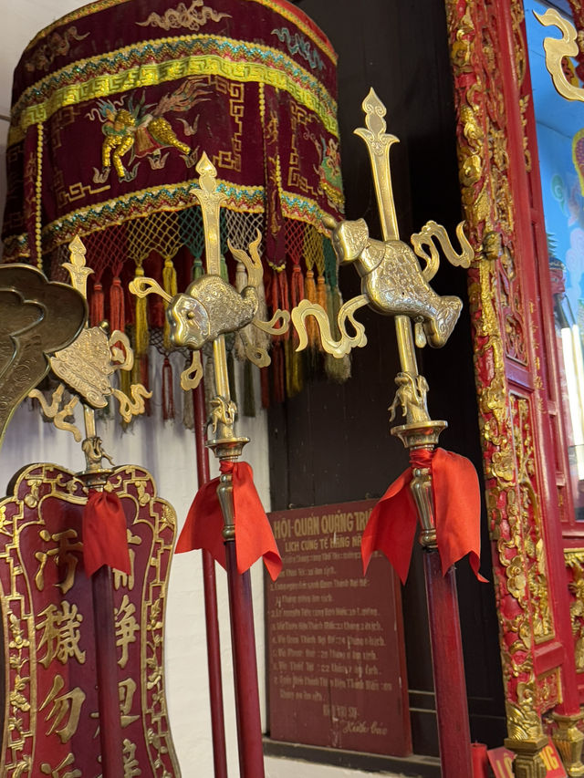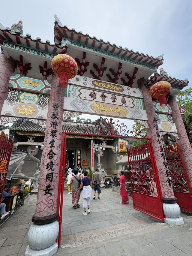 Da Nang, Vietnam | The Quảng Triệu Assembly Hall in Hoi An Ancient Town: A Temple of Elegance and Loyalty Left Behind by Chinese Merchants Travel Articles Among the many guild halls in Hoi An Ancient Town, the Quảng Triệu Assembly Hall is a particularly representative one. Built by Chinese immigrants from Guangzhou and Zhaoqing, it served as a place for merchants and expatriates to gather, exchange ideas, and worship. Today, it serves as a vital base for travelers exploring the cultural fusion between China and Vietnam. The hall is a majestic building, with vermilion gates, intricately carved eaves, and colorful porcelain dragon and phoenix decorations on the roof, showcasing the exquisite craftsmanship of Chinese artisans. Passing through the mountain gate, the courtyard is filled with the scent of incense, creating a solemn atmosphere. The main deity enshrined in the main hall is Guan Yu (Guan Gong), a symbol of loyalty, protection, and blessing, and a shared spiritual sustenance for the Chinese community. In addition to Guan Yu, deities such as the Heavenly Mother, Guanyin, and the God of Wealth can also be seen within the hall. Locals and tourists often offer sincere prayers before the incense table. The wood carvings, stone carvings and hanging couplets and plaques in the hall all retain a strong imprint of Chinese culture.