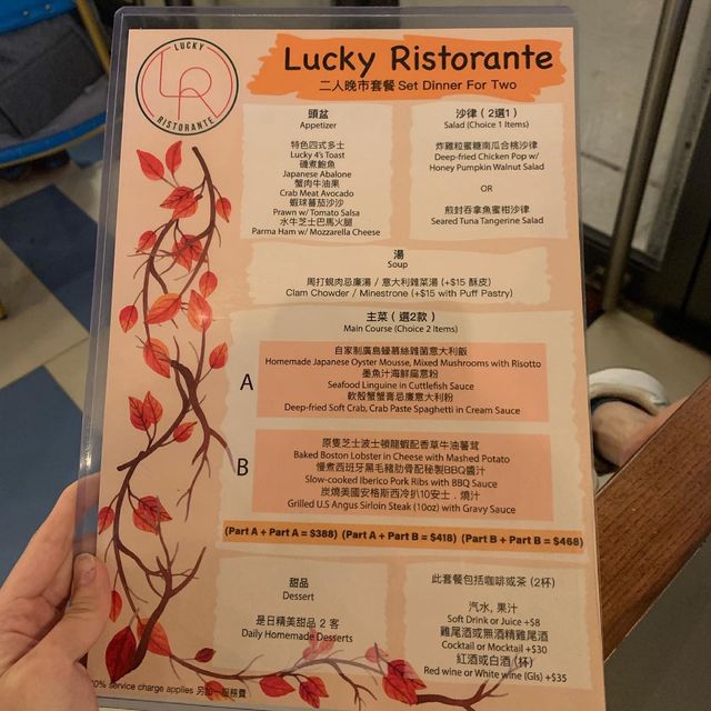 Lucky Ristorante❤️ 👥 Recently went to Mong Kok like left Pu 618 Shanghai Street, is a revitalized building, 👀 weekend will also have a small market, and the building has many very interesting shops ~ 👣 This time went to the 3rd floor of a 🌸 full of dried flowers small fresh Western restaurant, quiet environment comfortable seating, very suitable to sit down and talk. 👈 Swipe left to the far left has a menu ◾️Package for two A+B $418 🍞 Starter - Specialty four-style toast: steamed bacon / crab avocado / shrimp ball tomato salad / buffalo cheese Parma ham 🥗 Salad - Pan-fried Tuna Honeydew Salad 🥣 Soup - Weekly Clam Cream Soup x 2 ▪️ Charcoal American Angus Broiler Steak 10 oz "Steak selected medium served with barbecue sauce and potato grill" "The steak is just right, the steak is thick and juicy when you bite into it." ▪️Soft Shell Crab Crab Cream Cream Pasta "Big thick, fragrantly fried soft shell crabs spread over spaghetti" "The pasta is cooked very fragrant because there are many ingredients together to cook red pepper green pepper yellow pepper mushrooms etc." ✔️Type: #KanaCai RestaurantShare #KanaCaiCafeShare 📍Room 301, 3/F, 618 Shanghai Street, Mong Kok #foodie