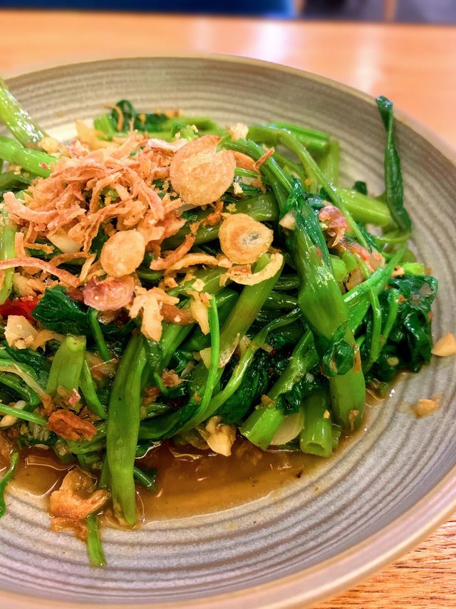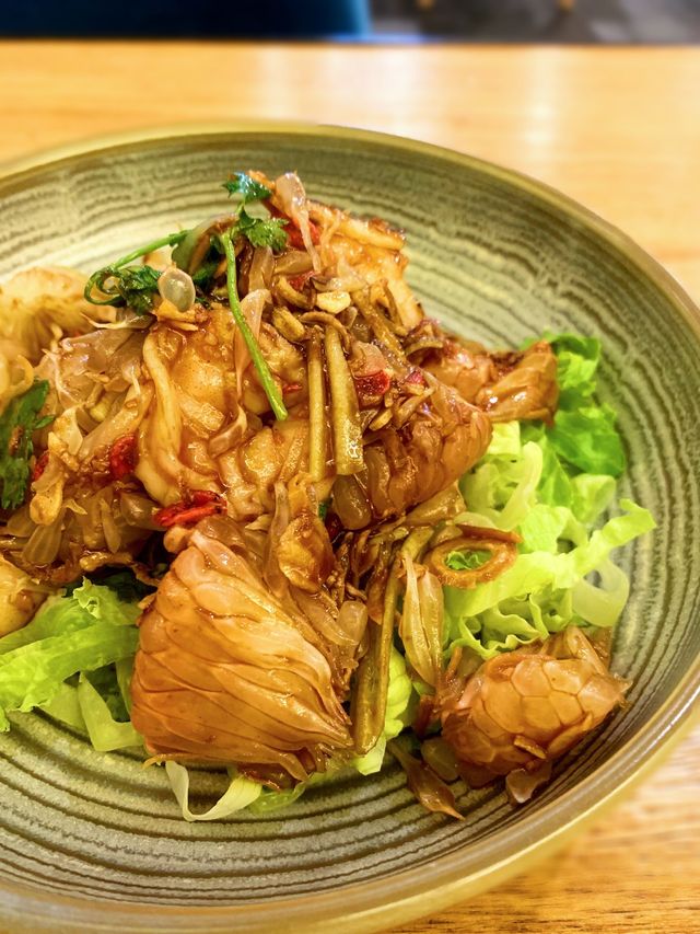 Surprising Thai cuisine ~ delicious volcano ribs After watching a movie in Langham Place, Mong Kok, we were looking for something to eat. As soon as we left the cinema, we saw this Bamboo Thai. We like Thai food, so let's try it. Fresh Grapefruit Shrimp Salad $72 Their grapefruit shrimp salad tastes very special, usually other restaurants eat is sweet and sour, it even has a salty taste, should have dropped some soy sauce it seasoned, some salty some sweet some sour, the taste is quite special how well. Golden shrimp cake $75 A plate of four pieces, the freshly fried shrimp cake is particularly crispy, but I guess its name says golden, referring to the color, we mistook it for salted egg yolk 🥰 because the shrimp cake has no salted egg yolk flavor 😝 Thai Flying Sky Pass $68 Every time I eat Thai food, I always order it. The just fried through cabbage is especially delicious, full of savory and delicious🥰 Coconut Chicken Soup $62 I had coconut chicken soup at another Thai restaurant a few days ago and thought it was delicious, so I tried this one again. The coconut chicken soup was quite clear and sweet with a little sour and spicy, the taste was particularly appetizing, but the chicken was not very tender. Overall however not lost. Volcano ribs $118 We were attracted by the appearance of the menu, so we asked you to try it. I didn't expect such a big portion, and I couldn't eat it all and had to take it home 🥰 The next day I slowly sipped. The volcano ribs are tender, the sauce is a little sour and spicy, very tasty and refreshing. However, it was unexpected that this volcano ribs were to be eaten with our hands, but the restaurant had prepared gloves for us to use, which was courteous enough. 🥰 Bamboo Thai (Langham Place) (Mong Kok) Shop 02-03, 8/F, Langham Place, 8 Argyle Street, Mong Kok #foodexplorer #residentwriter