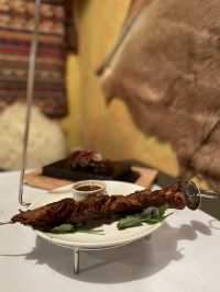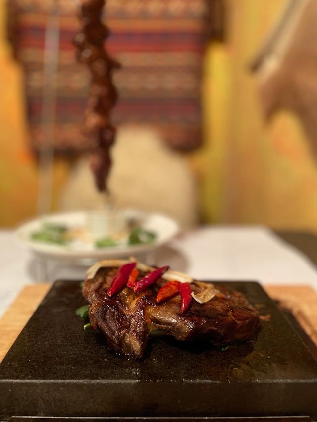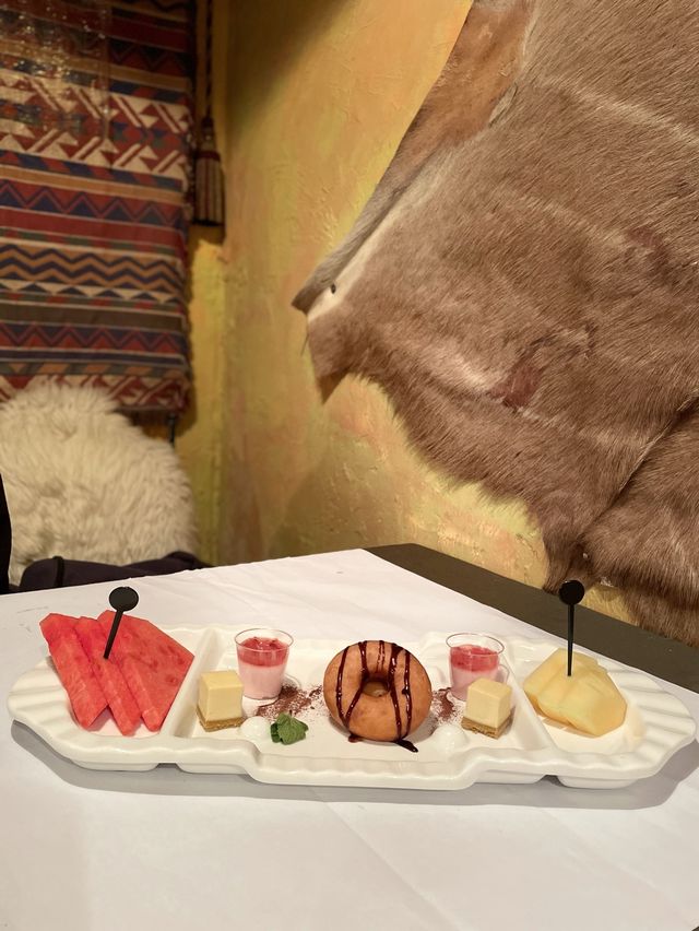 There is a restaurant in Tsim Sha Tsui that contains the flavor of Mongolia in the wild. This is nomads located on Kimberley Road. They are decorated here with a Mongolian wild vibe, comfortable wool spread over chairs, and on the walls are different animal skins, specimens of sheep skulls, and different interesting hunting tools. This time we had a set meal, and they also offer a buffet, where you can order your choice of ingredients and hand them over to the chef to cook. Our set ordered Mongolian flaming grilled lamb skewers, stone-grilled flavored steak with Mongolian sauce. Mongolian flame grilled lamb skewers: very large skewers, a skewer has several pieces, the heat is controlled appropriately, the appearance is a little burnt, plus the secret sauce, makes the aroma more prominent, with the restaurant's decorations kind of makes people go to the Mongolian grassland feeling. Stone-grilled flavored steak with Mongolian sauce: Served with hot stones, it was still sizzling when served. The package also has appetizer salad hot plates are optional, can be considered a semi-buffet, and will be served at the end of the dessert platter. Dessert platter: Includes donuts, cheesecake, strawberry mousse and seasonal fruit. #likes #likesbackalways #likeback #followbacknow #likesforlike #follow4followback #followforfollow #tagsforlikes #folloebackinstantlyu #wwhkfood #ufoodhk #delicious #yummy #hkfoodie #foodporn #hkfood #foodie #foodporn #foodlover #foodkiller #photopics #hkig #foodphotography #food #camera eat first #eat good food #foodie #photooftheday #Dakouzai in Tsim Sha Tsui #foodie